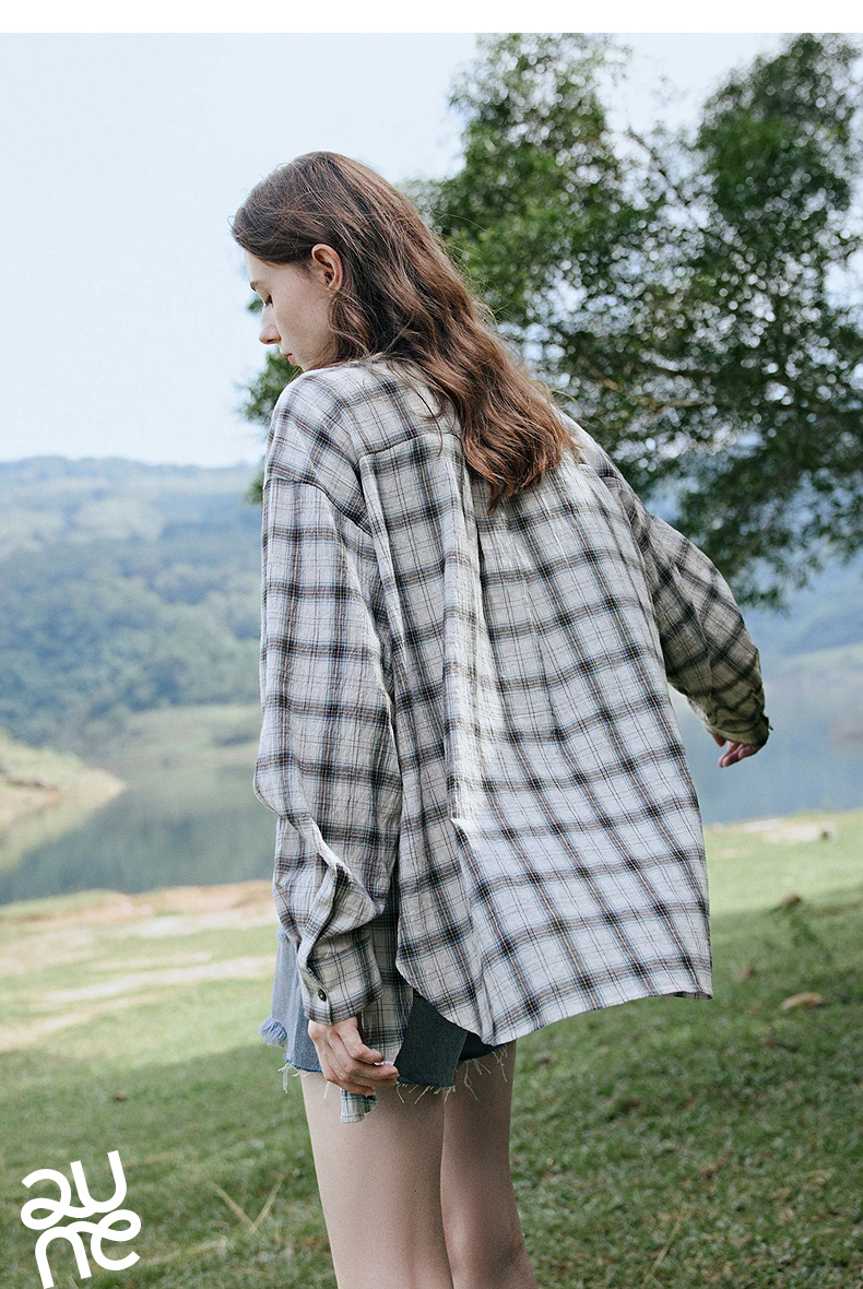 TOYOUTH Women Long Sleeve Blouse Shirt 2025 Spring New Cotton Plaid Retro Turn Down Collar Casual Shirt Tops