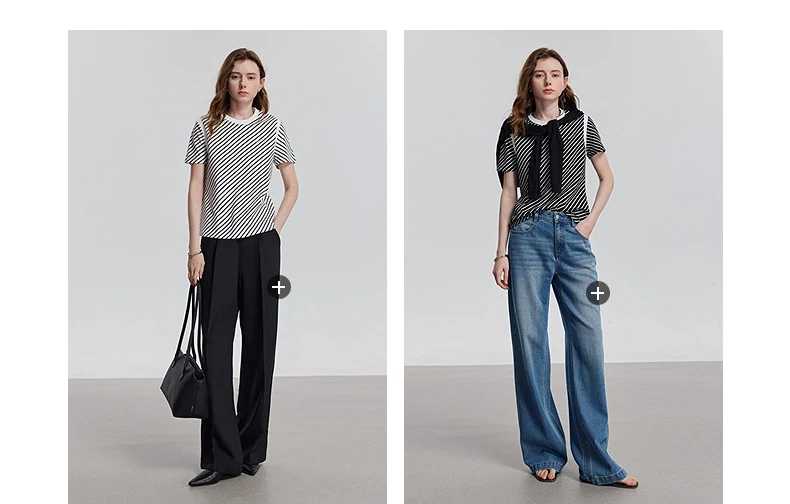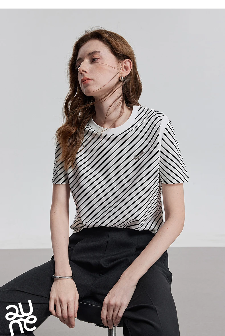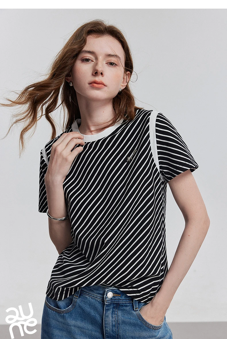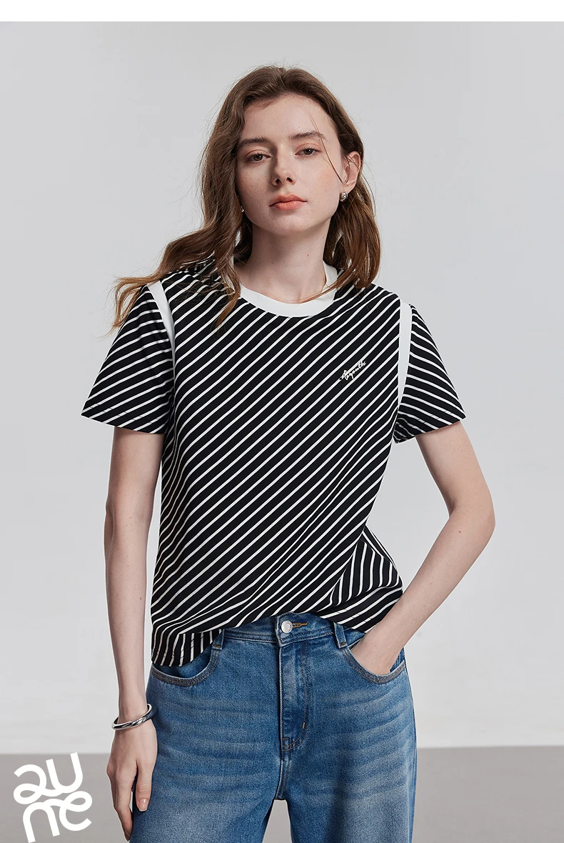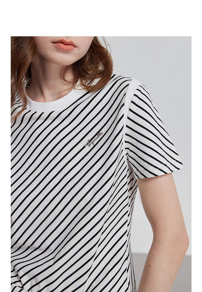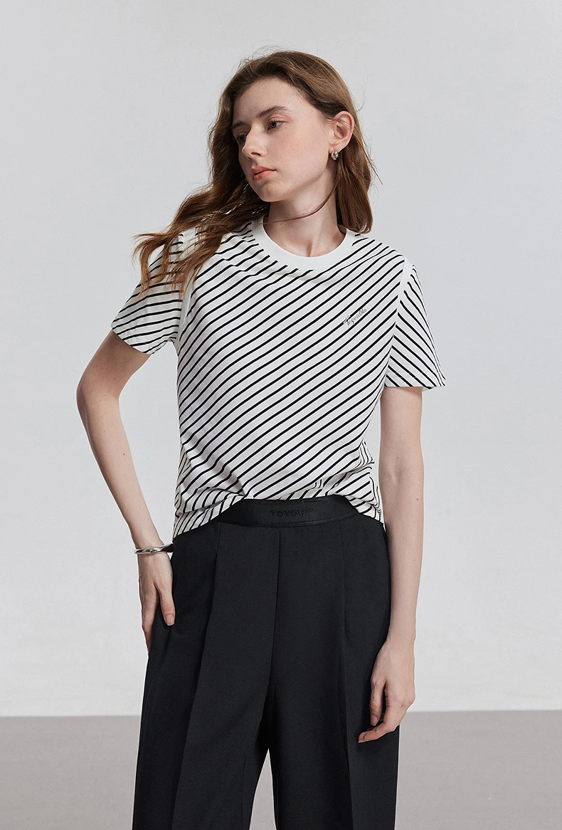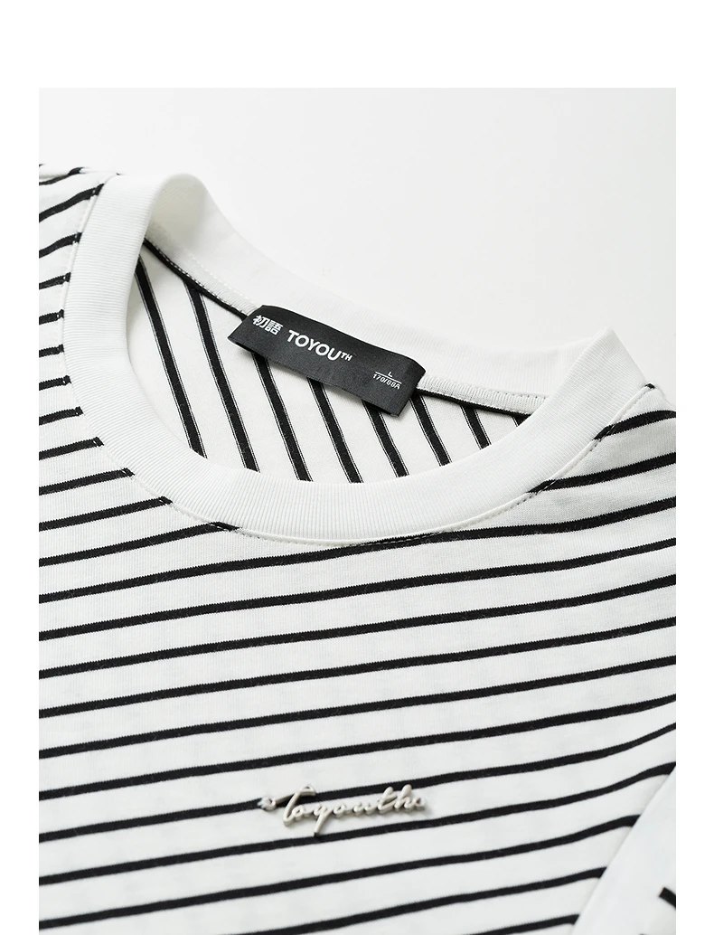 TOYOUTH Women Short Sleeve Striped T shirt 2025 Spring New Tops 8521021