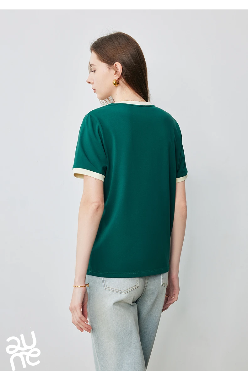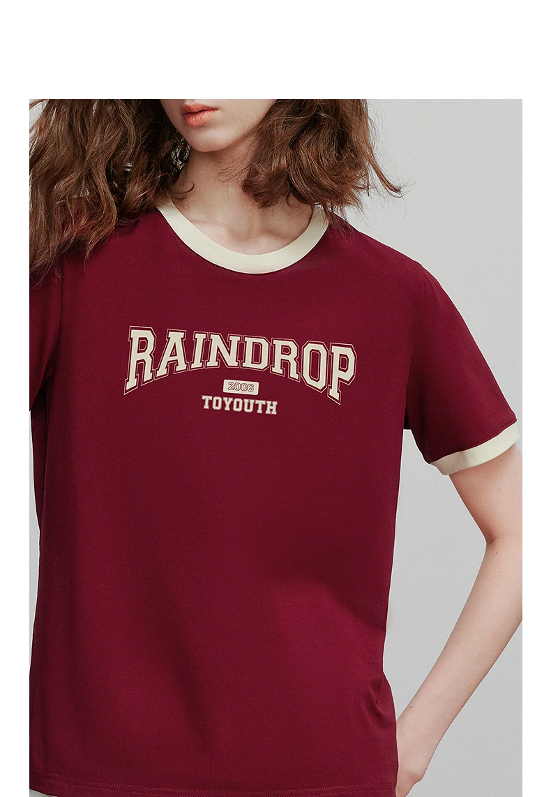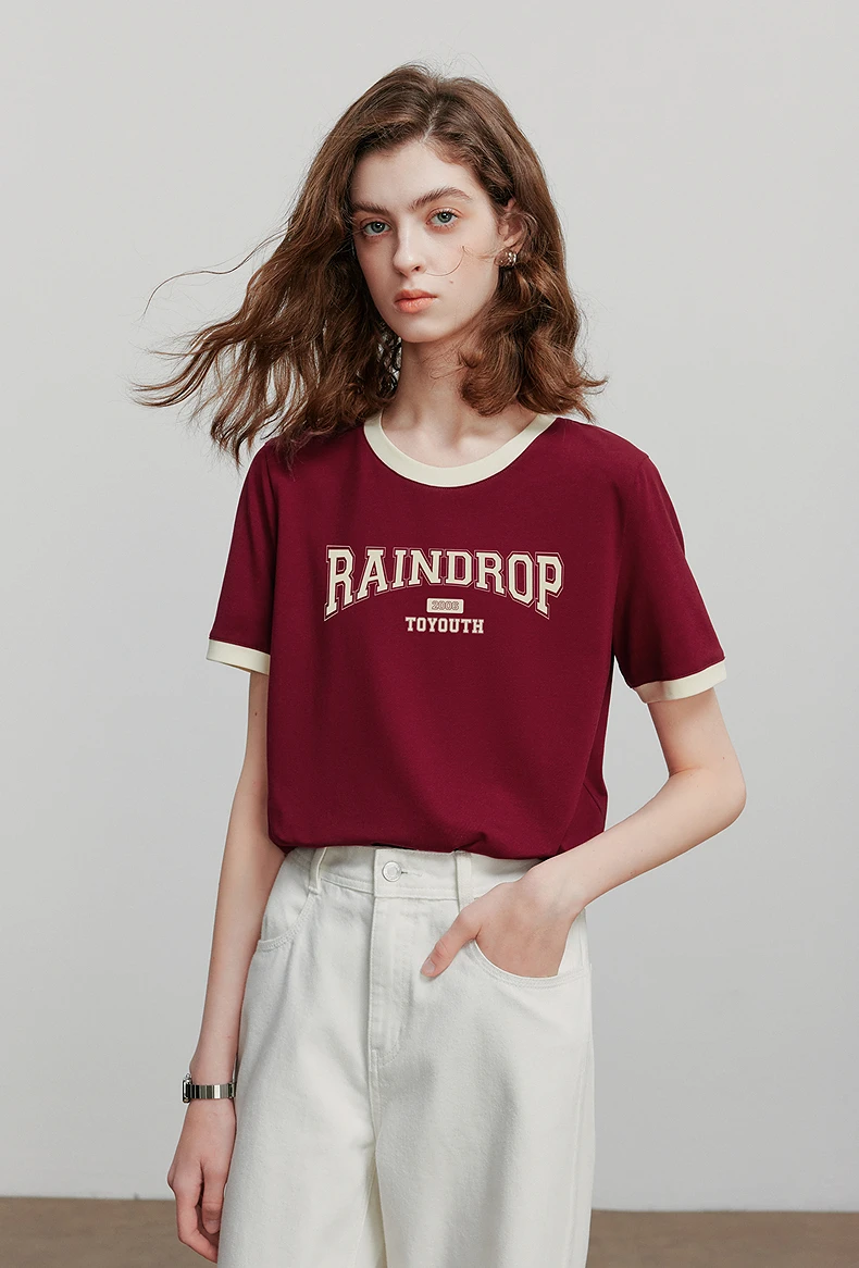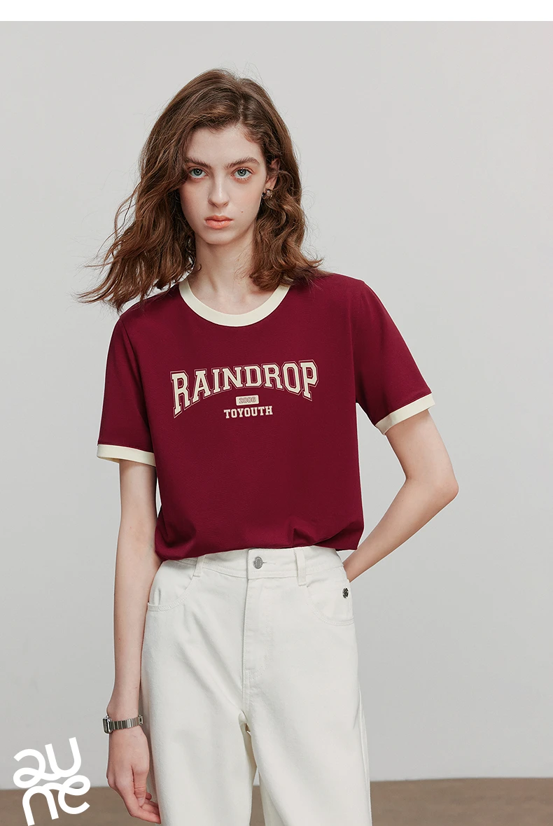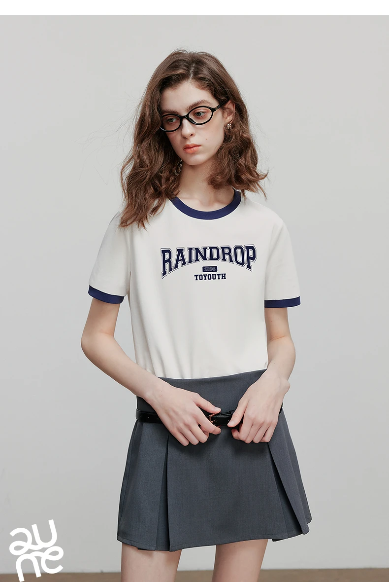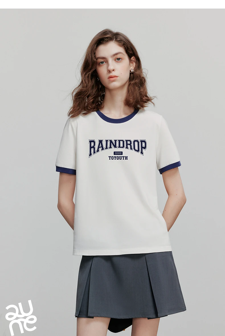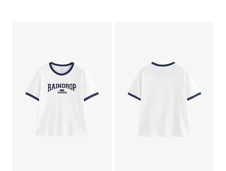 TOYOUTH Women Short Sleeve T shirt 2025 Summer New Color Blocked Letter American Style Antibacterial Cotton Tops GT5210004