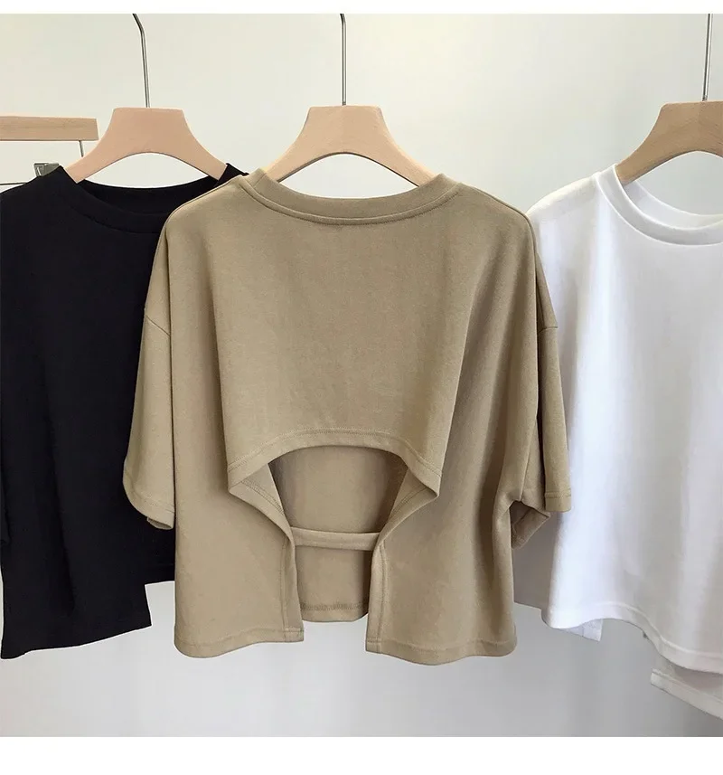 • Korean Style Design : Embrace the latest fashion trends with this Korean-style backless short T-shirt, perfect for summer outings.