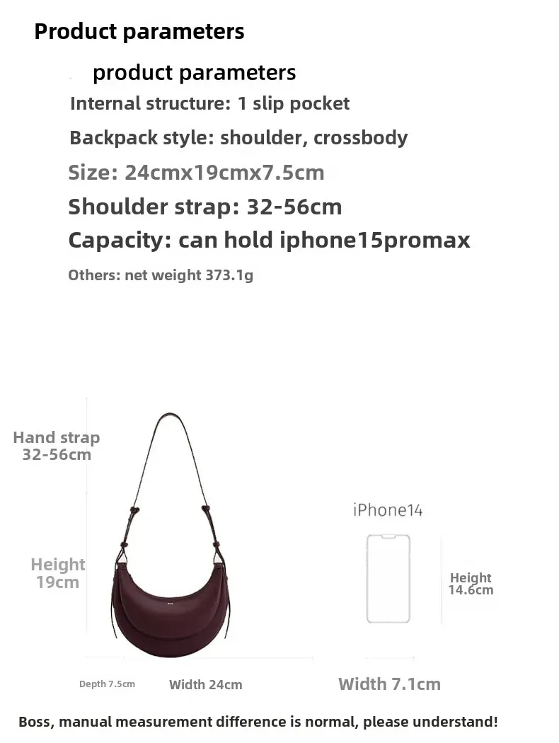 • Unique Shape : The unique half-moon shape of this bag adds a vintage touch to your outfit, making it a standout piece.