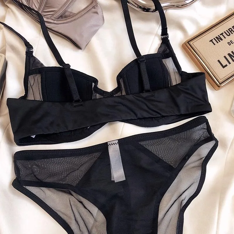 Women Bra and Panty Set Satin Silk Gather Push Up Lingerie Mesh Push Up Front Button Bra Adjustable Strap Thin Cup Underwear