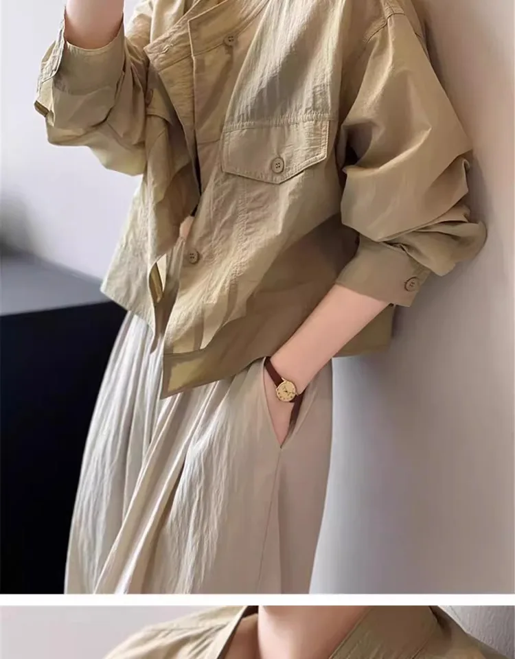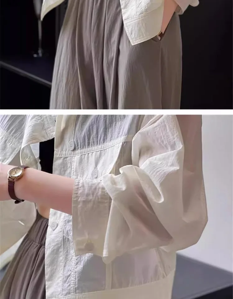 This women's short shirt features a chic Korean-style design, perfect for the summer season. Its slim fit and stylish collar add a touch of elegance to any outfit.