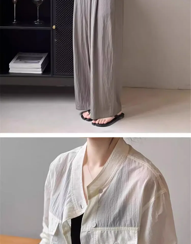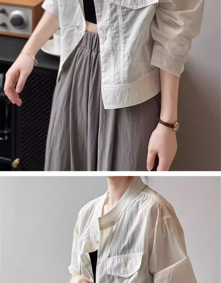 Women's ort Breathable Faion irt Thin Summer New Design Chic Stand Collar Trendy Top Korean Sle Long Sve Button up