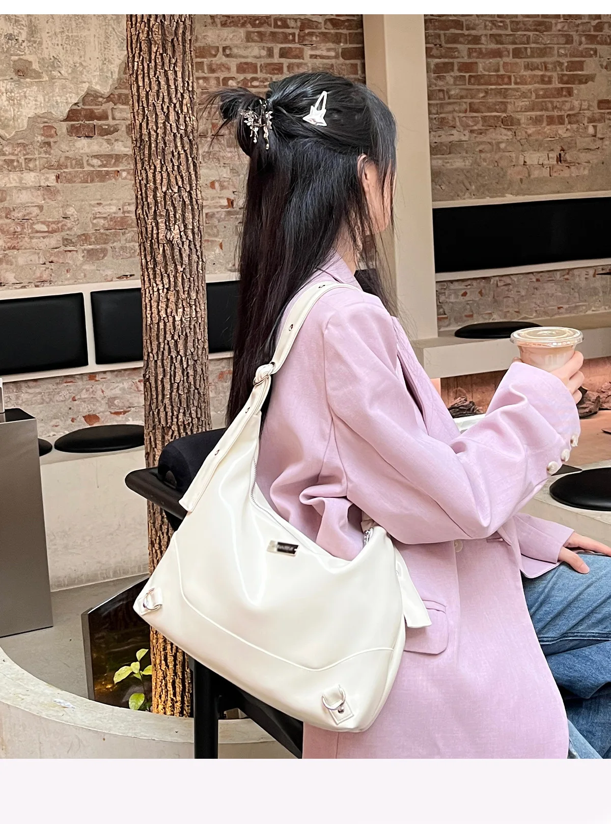 Women's Shoulder Bags 2024 Fashion Female Commuter Soft PU Leather Handbag Casual White Large Capacity Crossbody Bags for Ladies