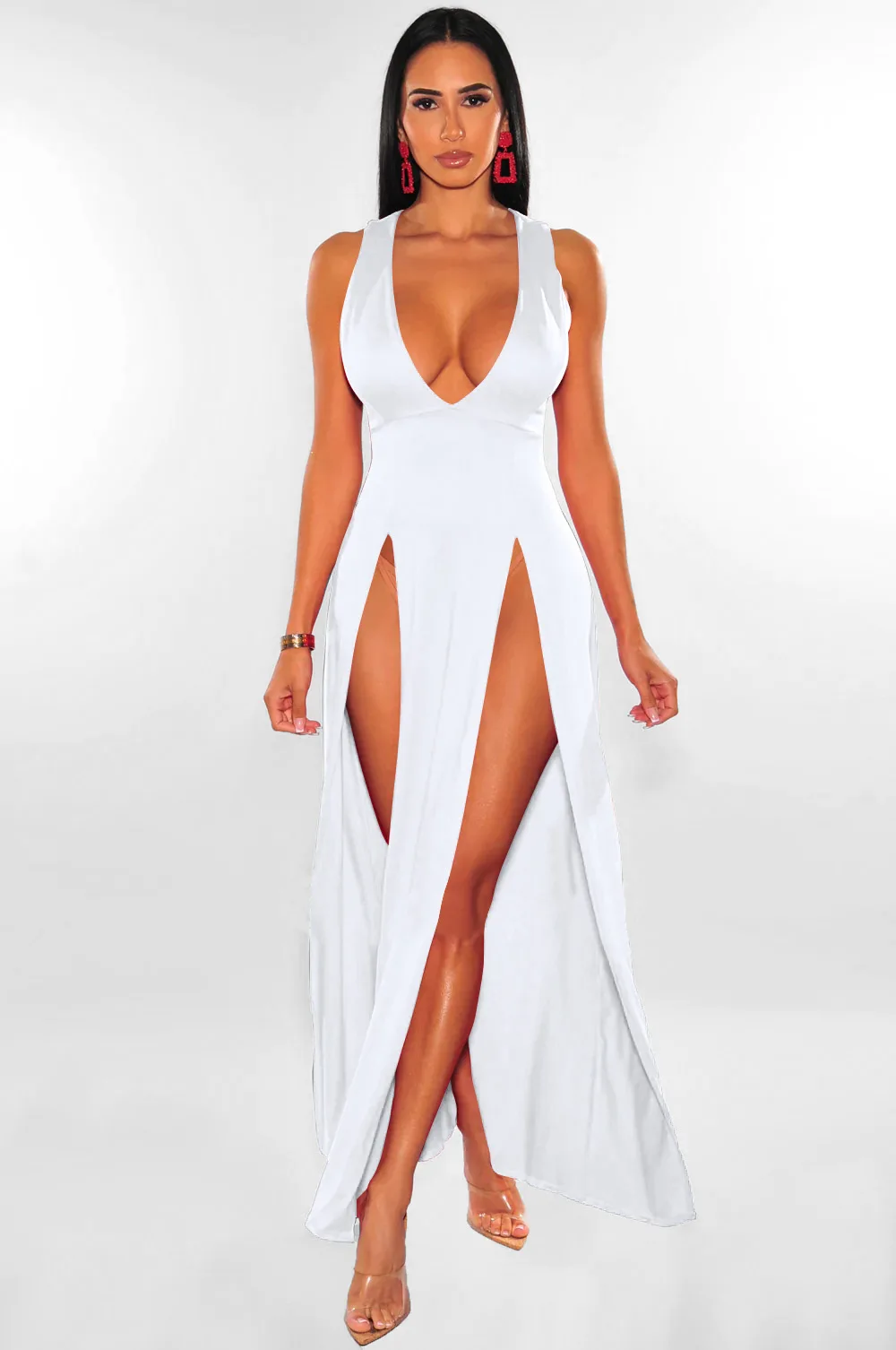 Womens Side Split Deep V Neck Bodycon Clubwear Maxi Vest Dress Sexy Sleeveless Bandage Slim Evening Cocktail Party Long Dress