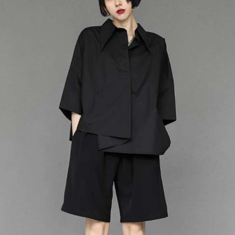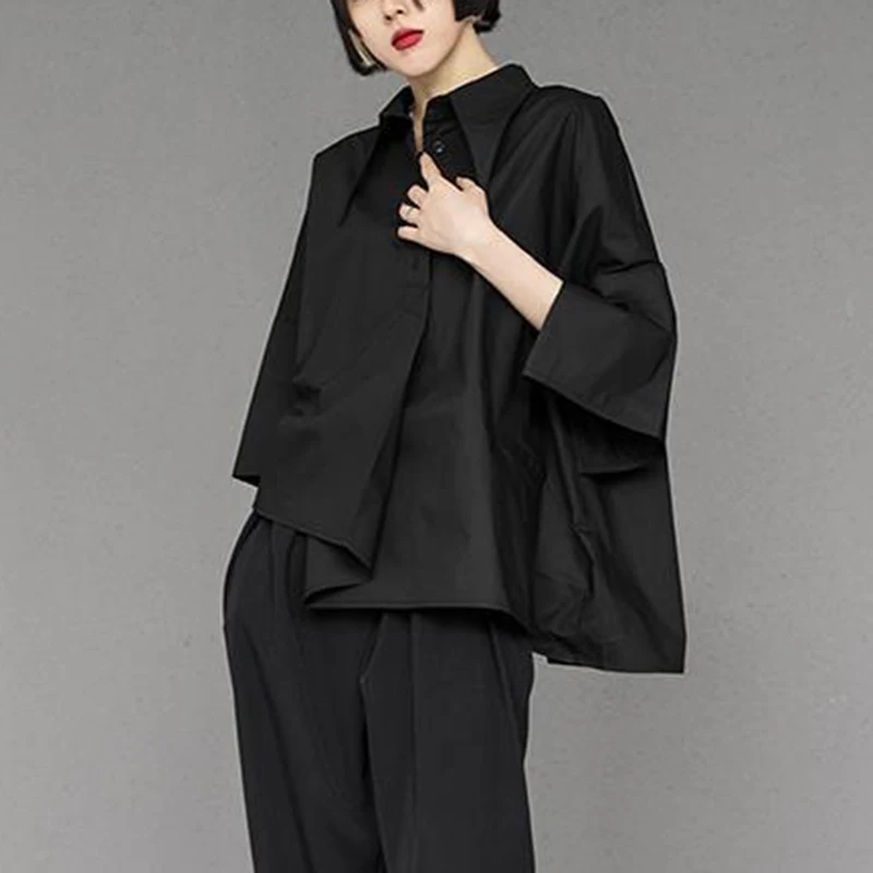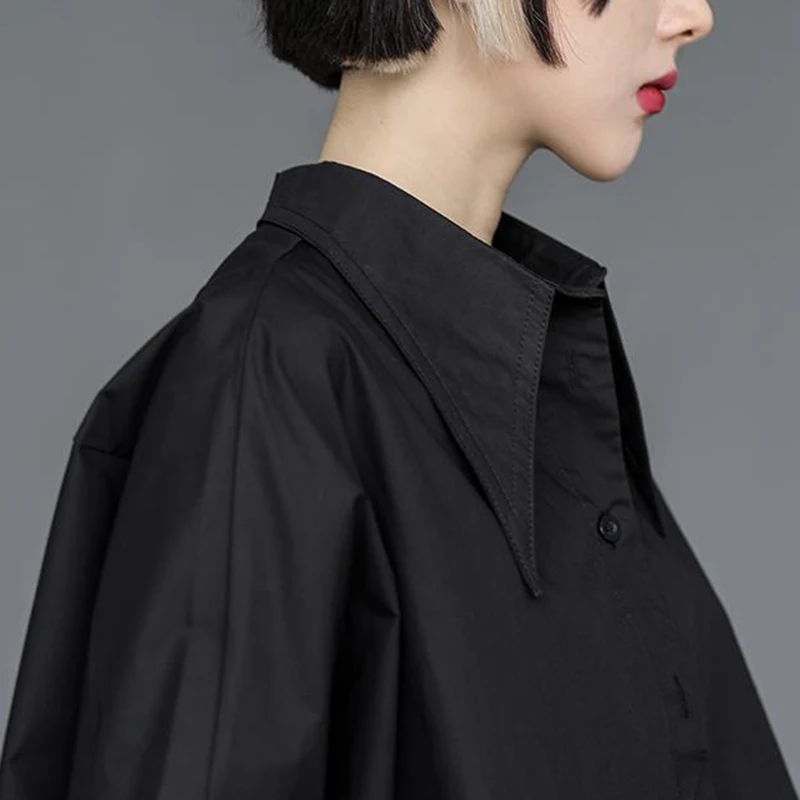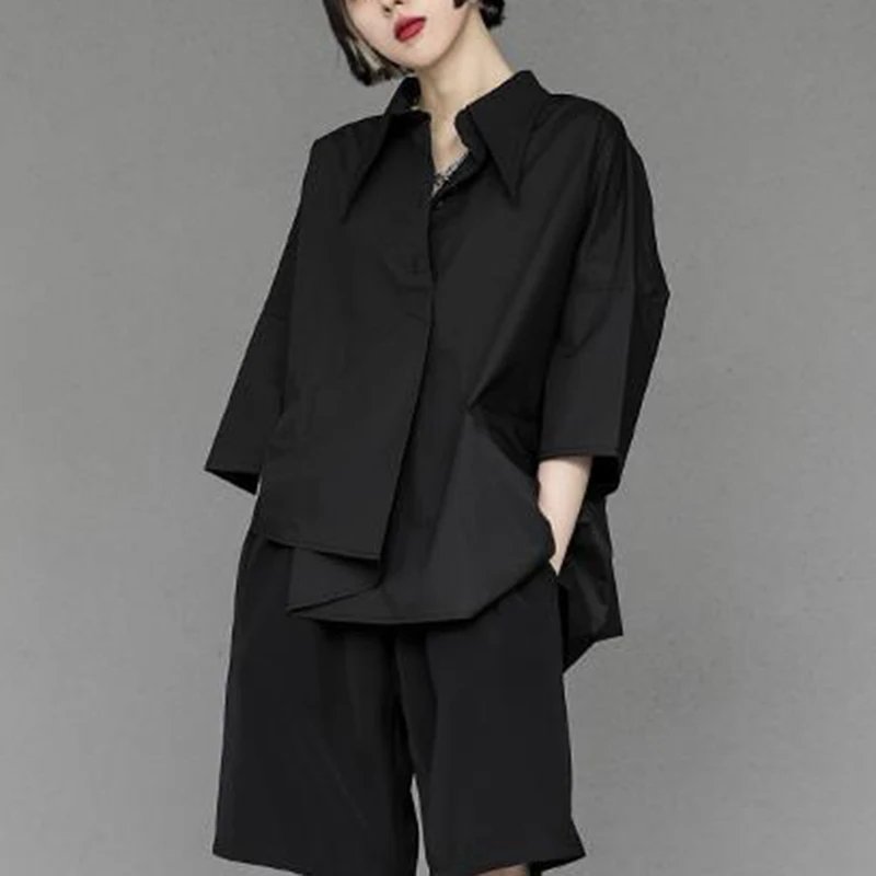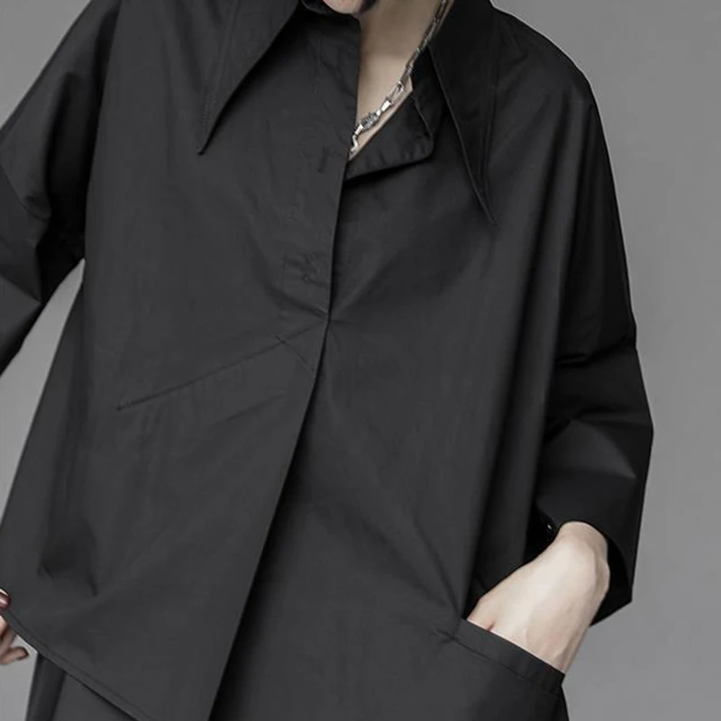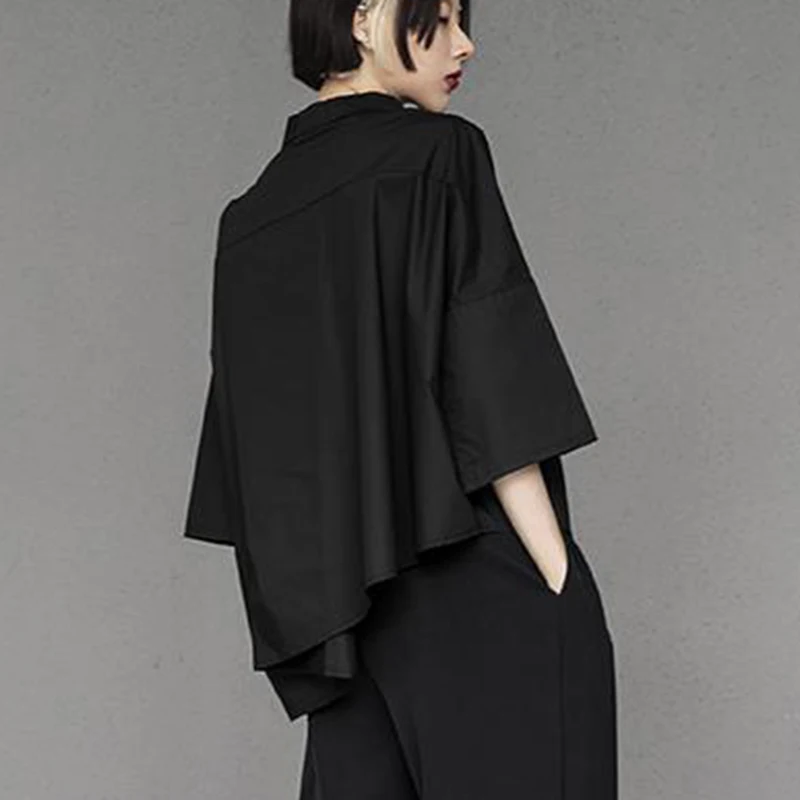 Y2K Women Chiffon Black Shirt Gothic Fashion Streetwear Loose Tops Dark Academic Irregular Casual Three Quarter Female Blouse